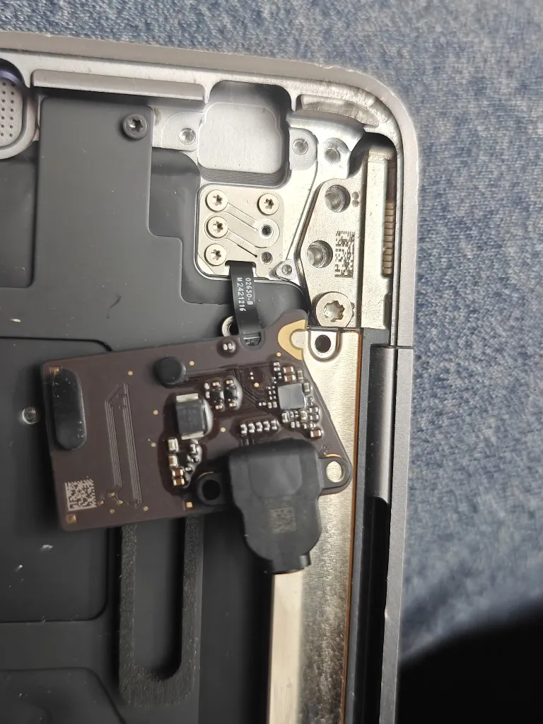 Both Thunderbolt/USB-C ports live on a small daughterboard with a flex cable to the logic board. This could potentially be repositioned in a custom enclosure for better port access.